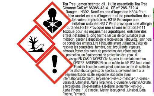 La législation européenne demande (sauf si vendu en tant qu' "arôme alimentaire") pour les huiles essentielles d'afficher des logos et des phrases d'avertissement si elles sont vendus en tant que "produit à diffuser" ou "produit chimique".