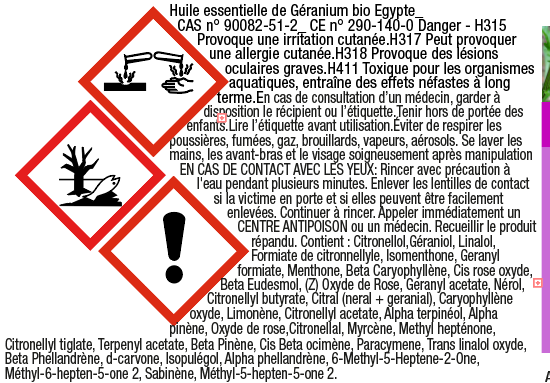 La législation européenne demande (sauf si vendu en tant qu' "arôme alimentaire") pour les huiles essentielles d'afficher des logos et des phrases d'avertissement si elles sont vendus en tant que "produit à diffuser" ou "produit chimique".